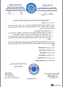 من جهتها دعت وزارة الخارجية والتعاون الدولي-حكومة اسامة حماد- كافة البعثات الديبلوماسية الى توخي الحذر عند التنقل في طرابلس والتنسيق مع الوزارة عند مغادرتها ، كما دعت وزارة الدكتور عبد الهادي الحويج البعثات الديبلوماسية الاجنبية الى الانتقال الى بنغازي”العامرة والامنة” لحين استقرار الاوضاع في طرابلس