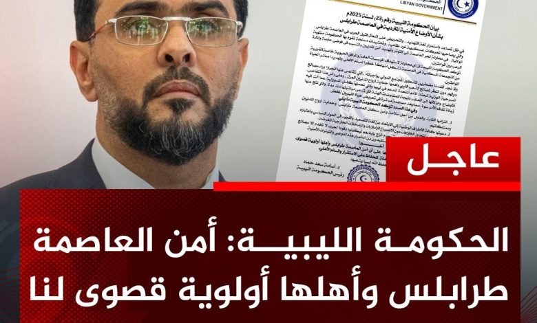 وأضافت الحكومة المكلفة من البرلمان أن أي محاولة لاستهداف المؤسسات العامة والمرافق الحيوية «تشكل انتهاكاً خطيراً للسلم الأهلي وتهديداً مباشراً لحياة المواطنين».