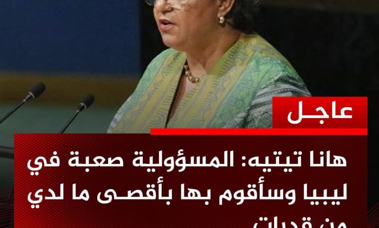 وتصر تيتيه على أهمية المضي قدماً في “عملية سياسية شاملة تستند إلى الخيارات التي أوصت بها اللجنة الاستشارية التابعة للبعثة الأممية”، وهذا ما أوردته خلال اجتماعها مع ممثلين عن تجمعات وائتلافات عدد من الأحزاب السياسية الليبية في مكتب البعثة في العاصمة طرابلس.