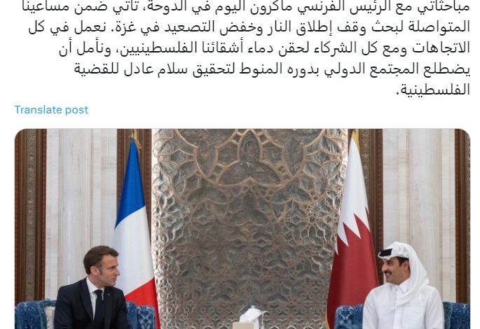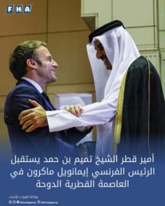 وكان  الرئيس إيمانويل ماكرون رئيس الجمهورية الفرنسية  وصل ، إلى الدوحة اليوم، وكان في استقباله  ، لدى وصوله مطار حمد الدولي، محمد بن عبدالعزيز بن صالح الخليفي وزير الدولة بوزارة الخارجية، و الشيخ علي بن جاسم آل ثاني سفير دولة قطر لدى الجمهورية الفرنسية، و جان باتيست فافر سفير الجمهورية الفرنسية  في ثطر، واستقبل امير قطر قبل ساعة من  نشر المقال الرئيس الفرنسي