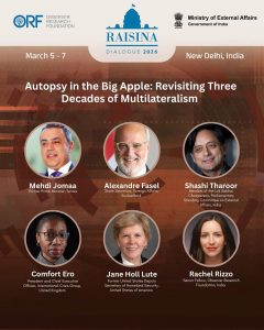 يشارك مهدي جمعة رئيس الحكومة الاسبق في مؤتمر دولي هام بالعاصمة الهندية نيودلهي من 5 الى 7 مارس 2026 يعرف باسم حوار رايسينا (Raisina Dialogue)، وهو المنصة الرائدة في الهند لمناقشة الجيوسياسة والاقتصاد الجغرافي. ويشارك في المؤتمر 2700 مندوبا من 110دولة ا وينظم المؤتمر مؤسسة “أوبزرفر ريسيرتش” (Observer Research Foundation) ووزارة الشؤون الخارجية الهندية.