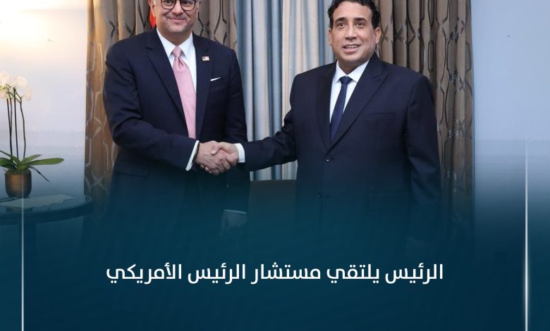 وقال المكتب الإعلامي لرئيس المجلس الرئاسي، في بيان مقتضب، اليوم الخميس، إن المنفي التقى مستشار الرئيس الأميركي بمقرّ إقامته في باريس، مشيراً إلى أنه «تمّ التطرّق بشكل معمّق وصريح إلى جملة من المسائل المرتبطة بالمسار الراهن، وإمكانات تجاوزه نحو مرحلة أكثر استقراراً وتوافقاً»، دون أن يوضح مزيداً من التفاصيل.